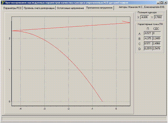 По результатам расчета строится программа нагружения металла, при этом в отдельном разделе также индицируются координаты ее характерных точек (рис. 1.6).
