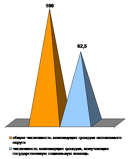 Соотношение общей численности малоимущих граждан автономного округа и численности малоимущих граждан, получающих государственную социальную помощь, %