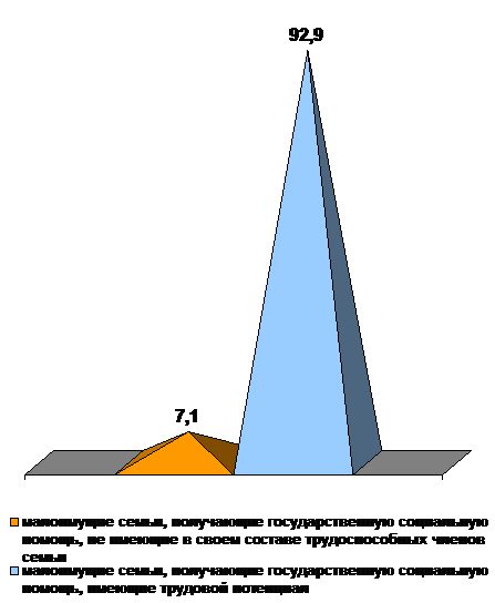 Соотношение малоимущих семей, получающих государственную социальную помощь, не имеющих в своём составе трудоспособных членов семьи и малоимущих семей, получающих государственную социальную помощь,