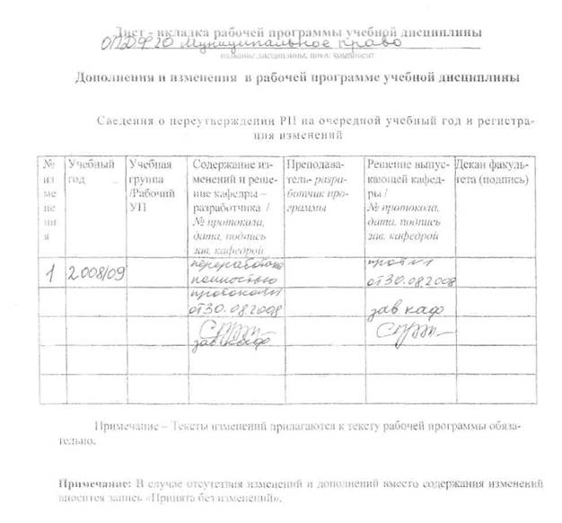 В соответствии с федеральным образовательным стандартом по специальности «юриспруденция» студенты юридического факультета изучают курс «Муниципальное право Российской Федерации». Для студентов заочного отделения предусмотрено чтение обзорных лекций, проведение семинарских занятий, выполнение контрольной работы. Изучение курса в течение семестра завершается сдачей экзамена.