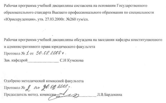 Выписка из Государственного образовательного стандарта по специальности «Юриспруденция», утв. 27.03.2000г. № 000 гум/сп.