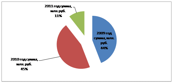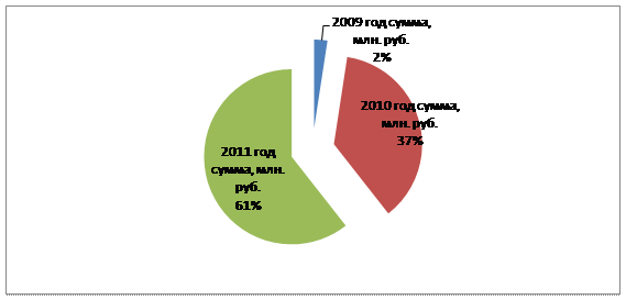 Рис. 7 Сумма кредитов, выданных по программе «Ипотечный» в ВТБ 24 с 2009 года по 2011 год.