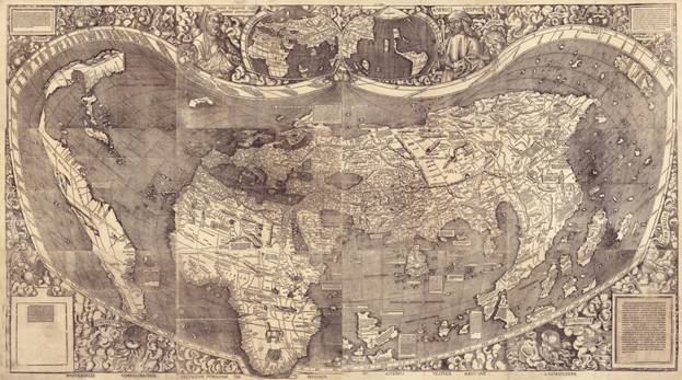 В начале XVI века, когда Америка только начала осваиваться европейцами, у испанцев были скудные познания о новых для них землях. Как можно увидеть из приведенной ниже карты, им были известны лишь Карибские острова и западное побережье Америки. При этом можно отметить хорошее знание Европы, северной Африки и средней Азии.
