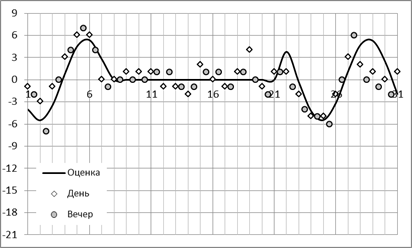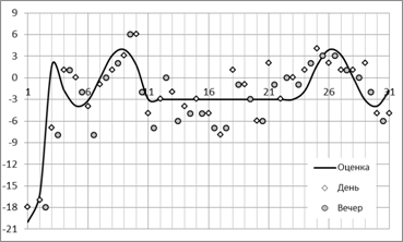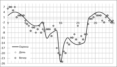 Рис.3. Изменение средней утренней и вечерней температуры в течение