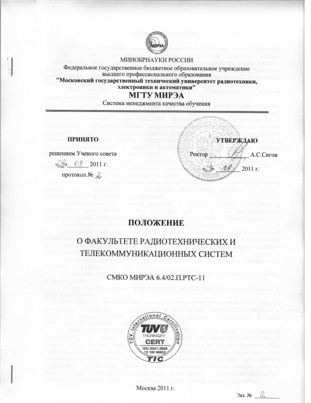 1.4 Полное наименование Факультета: факультет радиотехнических и телекоммуникационных систем; сокращенное наименование: факультет РТС или ФРТС.