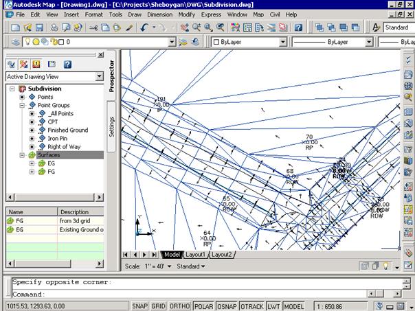 Так, продукт Autodesk Survey 2005 позволяет автоматизировать процесс обработки данных геодезических изысканий. С его помощью можно напрямую вводить данные с наиболее распространенных геодезических и спутниковых навигационных приборов. После ввода в программу теодолитных (тахеометрических) ходов, уравнивания ходов и обработки съемочных измерений, можно легко создавать пространственные объекты непосредственно в среде Autodesk Map 3D 2005. Если геодезические изыскания выполнялись с вводом специальных кодов классификации, то пространственные объекты могут быть созданы вообще автоматически.