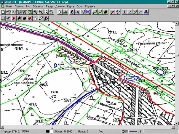 Векторизатор MapEDIT 5.0 (производитель , г. Москва) является одной из самых популярных в России программ для автоматизированной векторизации картографических материалов (рис. 7.21).