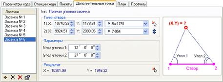 Затем задаются параметры результирующей точки – это углы, которые образуются у первой и второй точек створа. Кроме этого, можно не вводить параметры результирующей точки, а указать ее на плане (