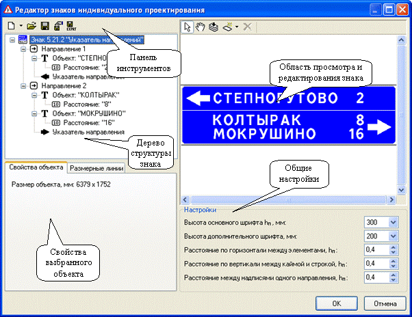 Рис. 8.26. Редактор знаков индивидуального проектирования IndorRoadSign 1.0