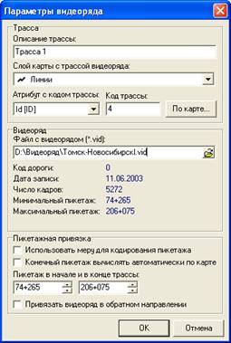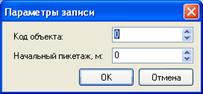 В этом окне нужно ввести код объекта, для которого будет записываться видеоряд. Параметр Начальный километраж определяет начальный пикет трассы при записи видеоряда. Если к компьютеру подключено устройство ИРА-3М, то ему будет передано значение этого параметра.