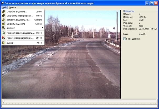 Чтобы открыть существующий видеоряд нужно выбрать команду меню Файл|Открыть видеоряд… и в появившемся диалоговом окне указать файл видеоряда с расширением VID. После этого в центре окна будет отображен первый кадр видеоряда.