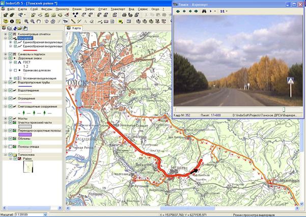 Специально для дорожной отрасли в ГИС IndorGIS встроены специальные модели данных (транспортные сети, пикетажная система координат), инструменты для транспортного анализа, методы визуализации автомобильных дорог и сетей, технология работы с видеорядами линейно-протяженных объектов и многое другое.