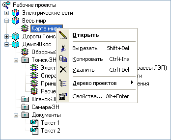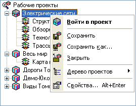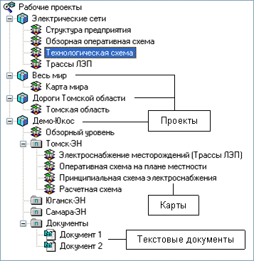 Чтобы увидеть состав проекта нужно нажать на знак «+», расположенный рядом с названием проекта. В дереве отображаются все карты, текстовые документы и т. д., входящие в состав проекта (рис. 9.4).