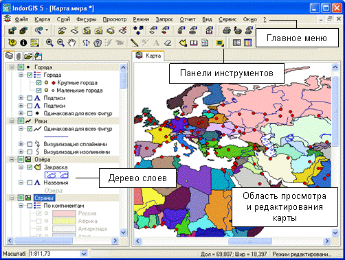 Рис. 9.1. Внешний вид полнофункциональной ГИС IndorGIS 5.0
