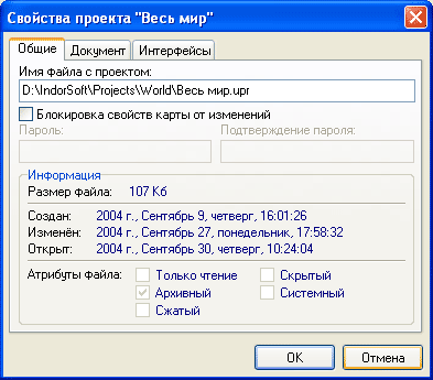 В диалоговом окне настройки параметров проекта (рис. 9.12) можно получить краткую информацию о файле проекта: его размер, время создания, изменения, атрибуты файла, установить пароль блокировки на редактирование. Также можно указать руководителя проекта, учреждение, в котором выполнялись работы над проектом, и краткое описание проекта, отображающееся в менеджере проектов. На третьей закладке отображаются подключенные к проекту интерфейсы баз данных.