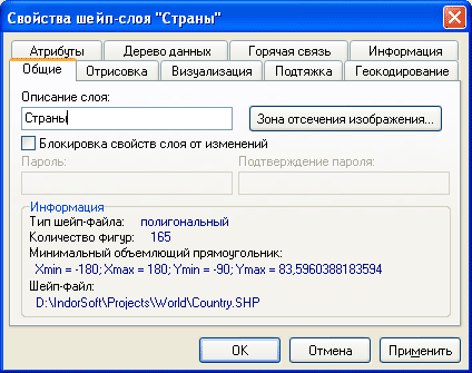 Кроме этого, можно определить для слоя параметры геокода, с помощью которого можно быстро находить на карте именованные объекты, здания по адресу и т. д.; параметры горячей связи, которая предназначена для связи объектов на карте с некоторыми другими объектами, например, с другими картами, проектами, растровыми изображениями и т. д.; формат получаемой информации по объектам слоя в режиме краткой информации.