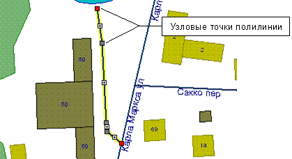 Чтобы создать полилинию (или полигон), необходимо задать узловые точки, входящие в контур полилинии. В самом простом случае они могут быть заданы визуально по карте (последовательными щелчками мыши). Если известны точные координаты всех узловых точек, может быть использован режим ввода фигур по координатам.