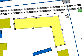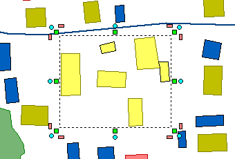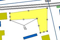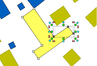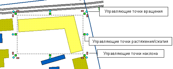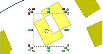 Когда объект находится в фазе выполнения блочных операций, его можно перемещать с помощью мыши по карте, поворачивать на произвольный угол, менять размер объекта по вертикали или по горизонтали.