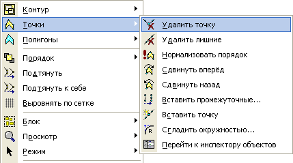 Для удаления узловых точек необходимо воспользоваться командой в контекстном меню. Для этого надо подвести указатель мыши к узловой точке на объекте, которая должна быть удалена, и открыть контекстное меню щелчком правой кнопки мыши. Затем надо выбрать в подменю