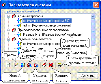 Для того, чтобы изменить права доступа на уровне всей системы, в окне «Пользователи системы» следует нажать кнопку