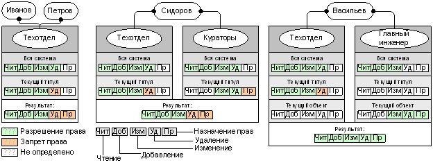 Рис. 9.40. Пример определения прав доступа в различных случаях