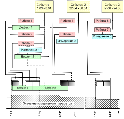 Любая информация об изменении состояния объекта появляется при проведении очередного события. Это может быть информация об обнаруженных и устраненных дефектах, изменении характеристик объекта, зафиксированных в результате измерений.