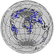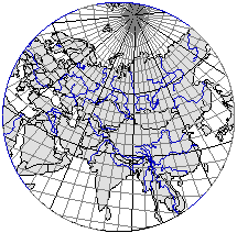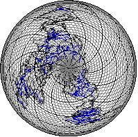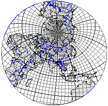Для построения изображений полярных шапок обычно применяется прямая равнопромежуточная вдоль меридианов азимутальная проекция рис. 3.43).