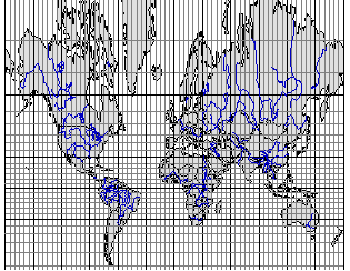 10. Переменно-масштабные проекции. Такие проекции могут быть использованы для картографирования неравномерно распределенных в пространстве объектов и явлений, когда существует необходимость сжатия или растяжения отдельных участков земной поверхности (рис. 3.44).