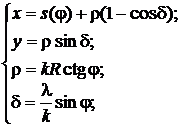 где R – радиус референц-сферы, – длина дуги меридиана от экватора до данной параллели , а k – константа, обычно принимаемая равной 2, но может иметь и другие значения.