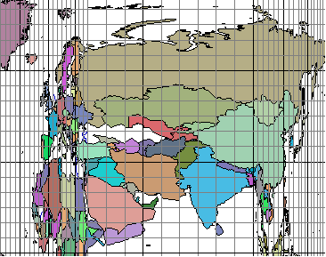 Рис. 3.37. Псевдоазимутальная проекция Гинзбурга