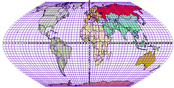 В основе разграфки и номенклатуры российских карт лежит карта масштаба 1:1 000 000, являющаяся кривосторонней трапецией и имеющая размеры 6° по долготе и 4° по широте. Все миллионные карты обозначаются в виде «Латинская буква + арабская цифра». Латинскими буквами обозначают трапеции по широте последовательно от A (широты 0–4°) до V (широты 84–88°). Буквой Z обозначается карта в районах полюса (широты 88–90°). Арабская цифра обозначает номер одной из 60 колонн шириной 6°, нумерация которых идет от 180° (рис. 3.46).