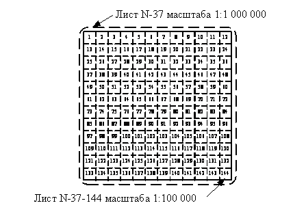 трапеции масштаба 1:100 000 (обозначаемыми в виде N-37-144 – в конце добавляется арабскими цифрами номер трапеции; рис. 3.50).