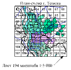 Рис. 3.56. Внутригородская номенклатура и разграфка листов