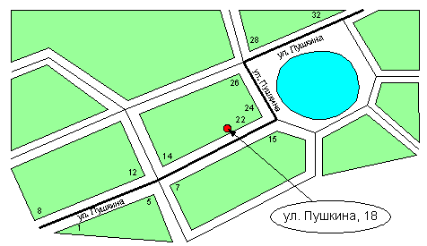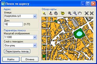 Рис. 4.3. Адресный поиск дома на карте города по геокоду
