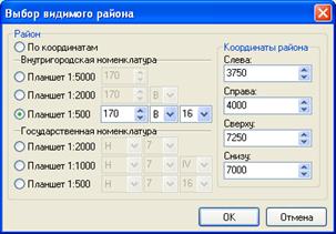 3. Выбор листа карты. Данная команда позволяет находить требуемый фрагмент карты (лист) по его номеру в некоторой разграфке. Некоторые ГИС позволяют создать произвольную разграфку с нумерацией листов карты по столбцам и строкам (например, ArcGIS). В других системах используются системы разграфки, общепринятые в России или в мире. Например, в системе IndorGIS пользователь может ввести номер 159-А-7 и система покажет на экране соответствующий лист топографического плана масштаба 1:500 (рис. 4.5).