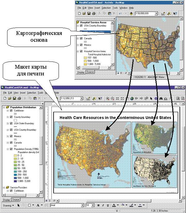Рис. 4.16. Подготовка макета карты для печати в ГИС ArcGIS