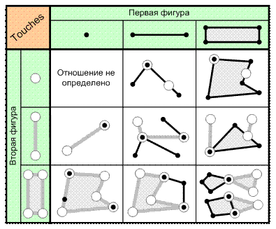Вариантом этого отношения является «Полностью содержит в себе» (Covers) , когда вторая фигура не может пересекать границу первой.