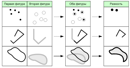 Рис. 6.17. Операция разности пространственных объектов