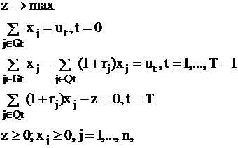 Gt - множество индексов j, когда по вкладу j сделано вложение в момент времени t;