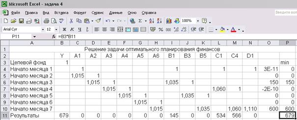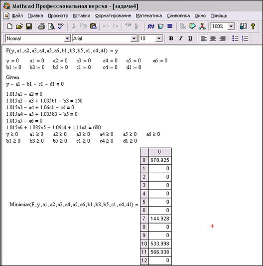 При необходимости, присвоив переменным полученные значения, можно рассчитать и значение целевой функции.