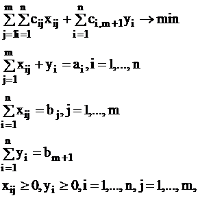 где: сi, m+1 - штраф за единицу нереализованной продукции в пункте i;