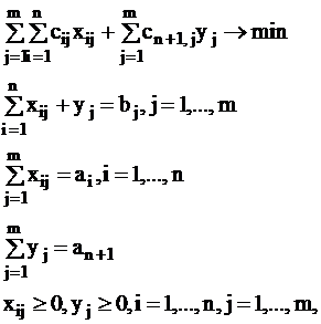 Задача с перепроизводством или дефицитом продукции должна быть обязательно сведена к замкнутому виду. При перепроизводстве вводят фиктивного m+1-го потребителя, причем