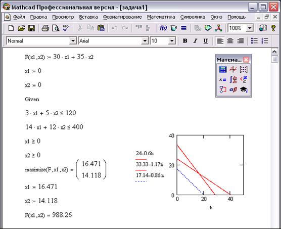 Не менее удобным представляется решение этой задачи с помощью математической системы Mathcad, поскольку эта система позволяет оперировать привычными символами и формами записи математических выражений.