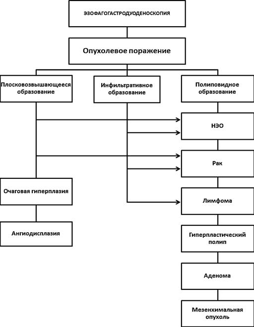 На основании полученных данных разработан алгоритм дифференциальной диагностики НЭО желудка, представленный на схеме 2.