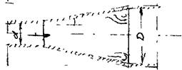 на стыке участков трубопроводов, когда один трубопровод сочленяется с магистральным трубопроводом большего диаметра. Величина коэффициента потерь напора в данном случае определяется с достаточной точностью на теоретическом уровне. Поток жидкости движущейся в трубопроводе меньшего диаметра d, попадая в трубу