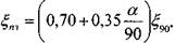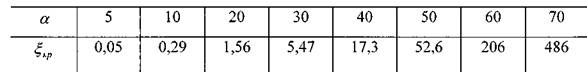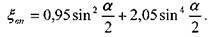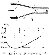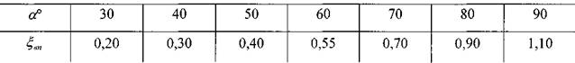 При большом угле конусности а >50° коэффициент потерь напора можно определять по формуле с внесением поправочного коэффициента.![]()