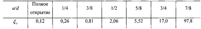 потоков жидкости около плашек задвижки. Коэффициент потерь напора зависит от степени закрытия задвижки![]()