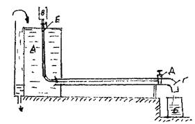 Выход из трубы в покоящуюся жидкость. Это обычный элемент стыковки напорной части трубопровода с резервуаром. Входной патрубок трубопровода располагается нормально к боковой