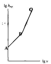 рядочным). Важным оказалось то обстоятельство, что при смене режима движения существенно менялась зависимость величины гидравлических сопротивлений от скорости движения жидкости. Этот факт можно проиллюстрировать на графике зависимости потерь напора от скорости, построенных в билогарифмической системе координат.
