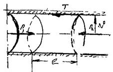 напряжений на примере потока жидкости в круглой цилиндрической трубе. Двумя сечениями выделим в потоке жидкости отсек длиной /. На данный отсек жидкости будут действовать силы давления, приложенные к площадям жи
